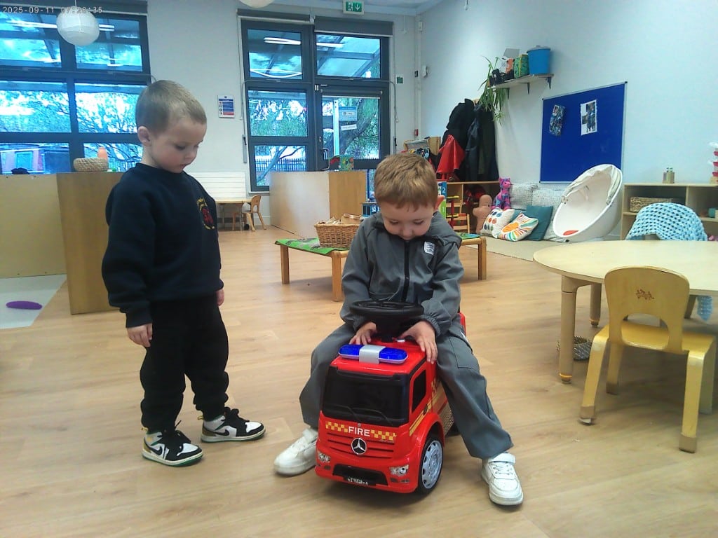 The children have been enjoying energetic play on the trampoline and using trucks to build coordination and gross motor skills. These activities not only support physical health but also encourage cooperative play and problem-solving, which are essential for personal, social, and emotional development.