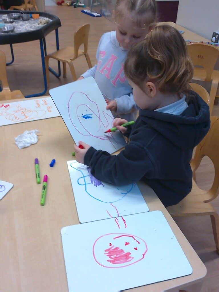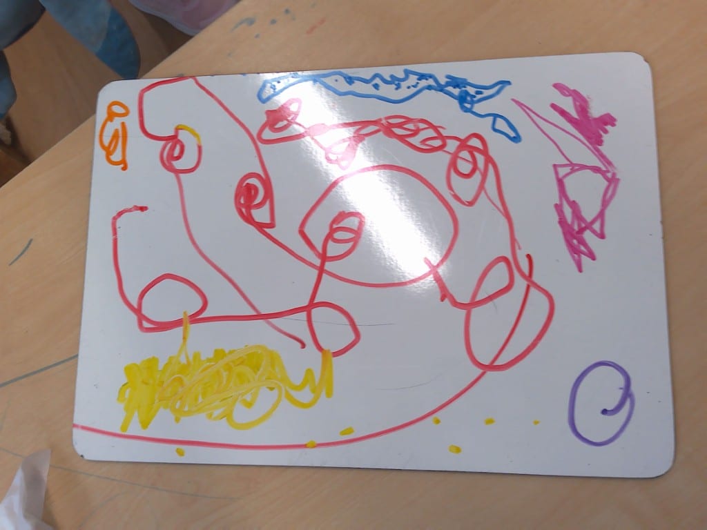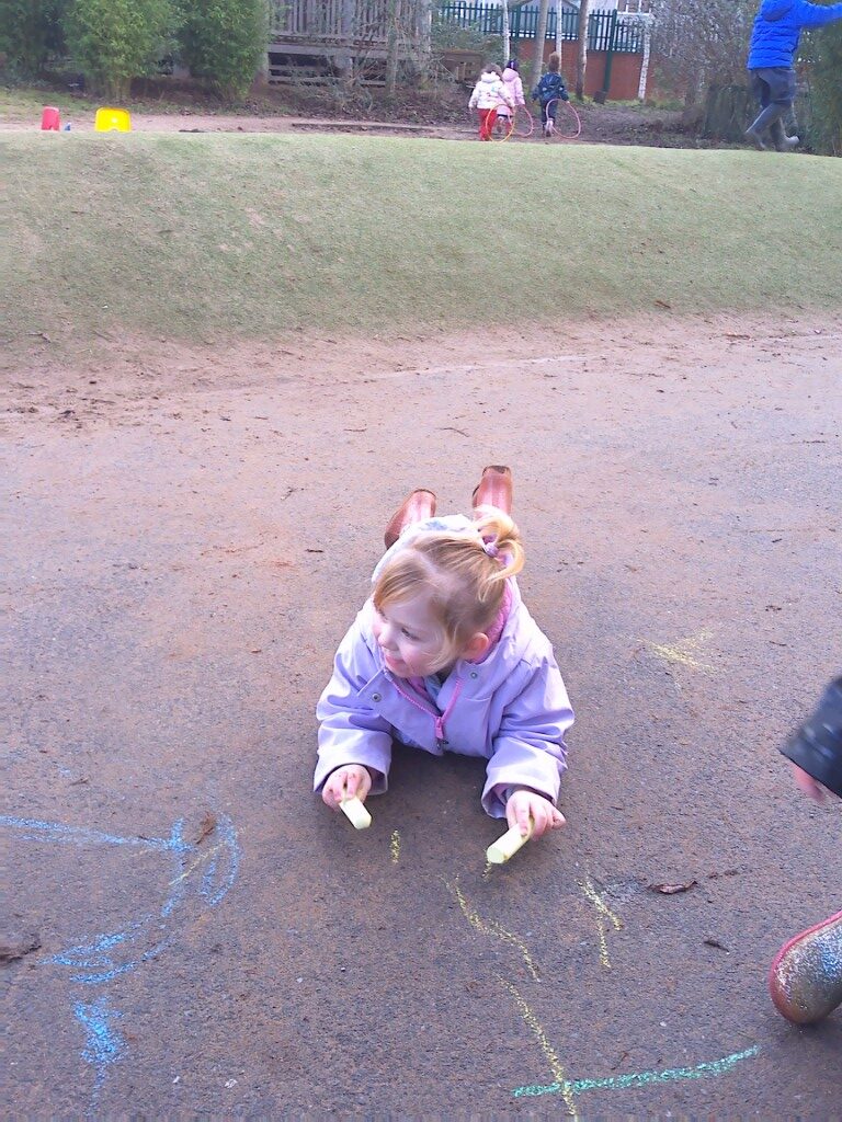 The children have been showing an interest in mark making and we have seen them creating marks in many different areas of our provision. The children have been using chalk, paint, and whiteboard pens to draw and make marks in different ways, experimenting with various tools and surfaces whilst developing their fine motor control and early writing skills.