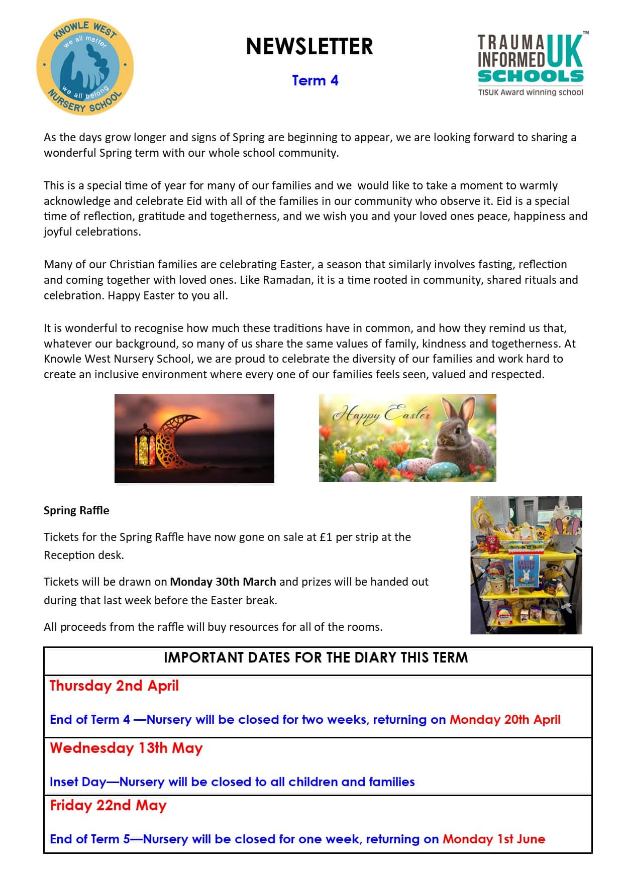 This edition also includes reflections on the Spring season, with messages for families celebrating Eid and Easter, as well as information about our Spring Raffle and how the funds will support resources across the nursery. You’ll also find reminders to help prepare your child for the warmer weather as we continue to enjoy plenty of outdoor learning and play.